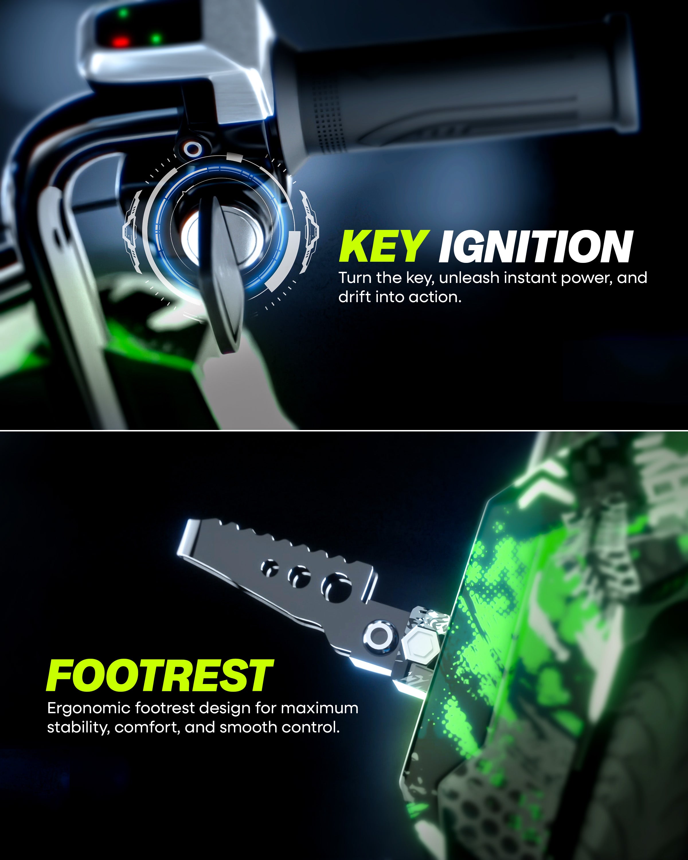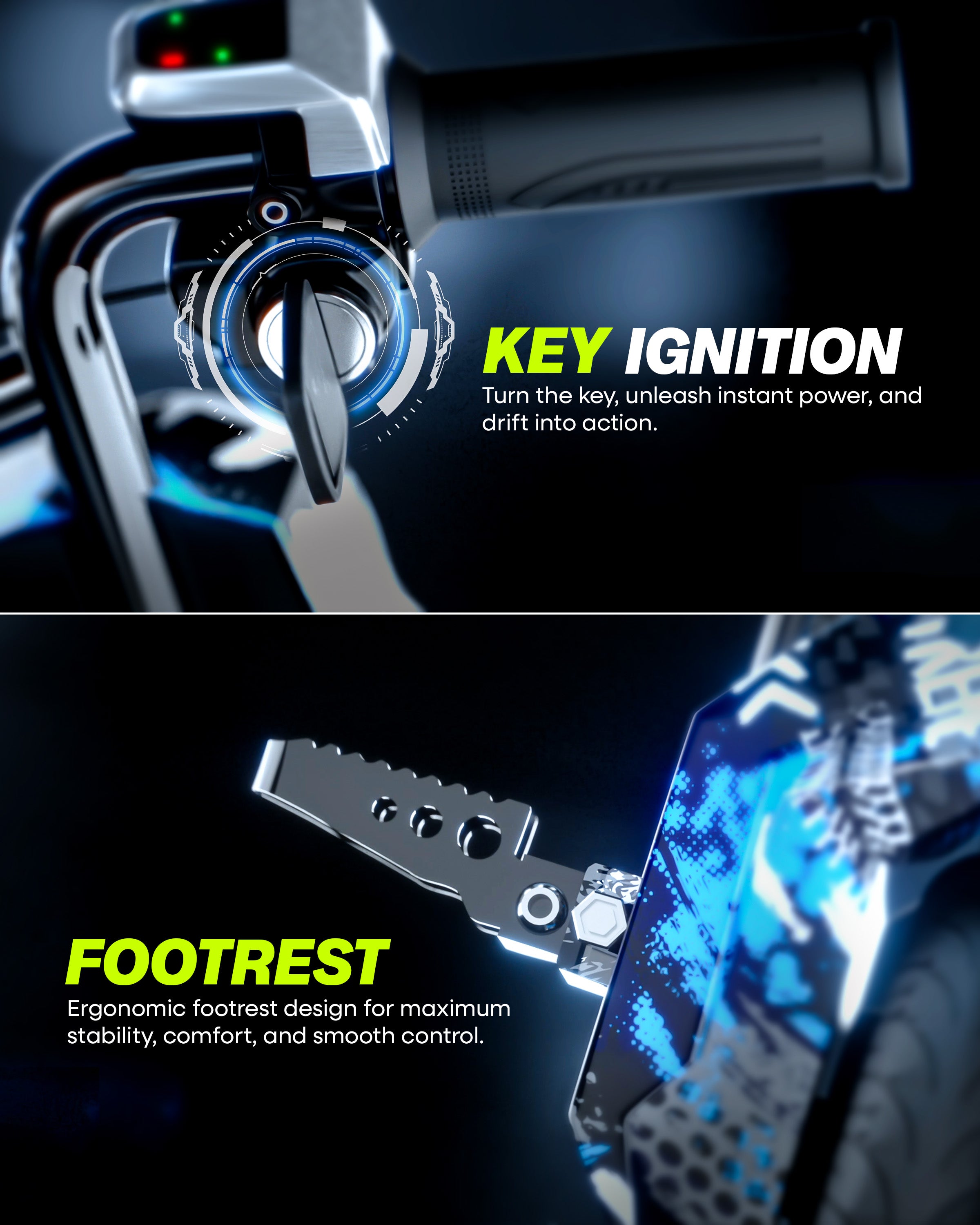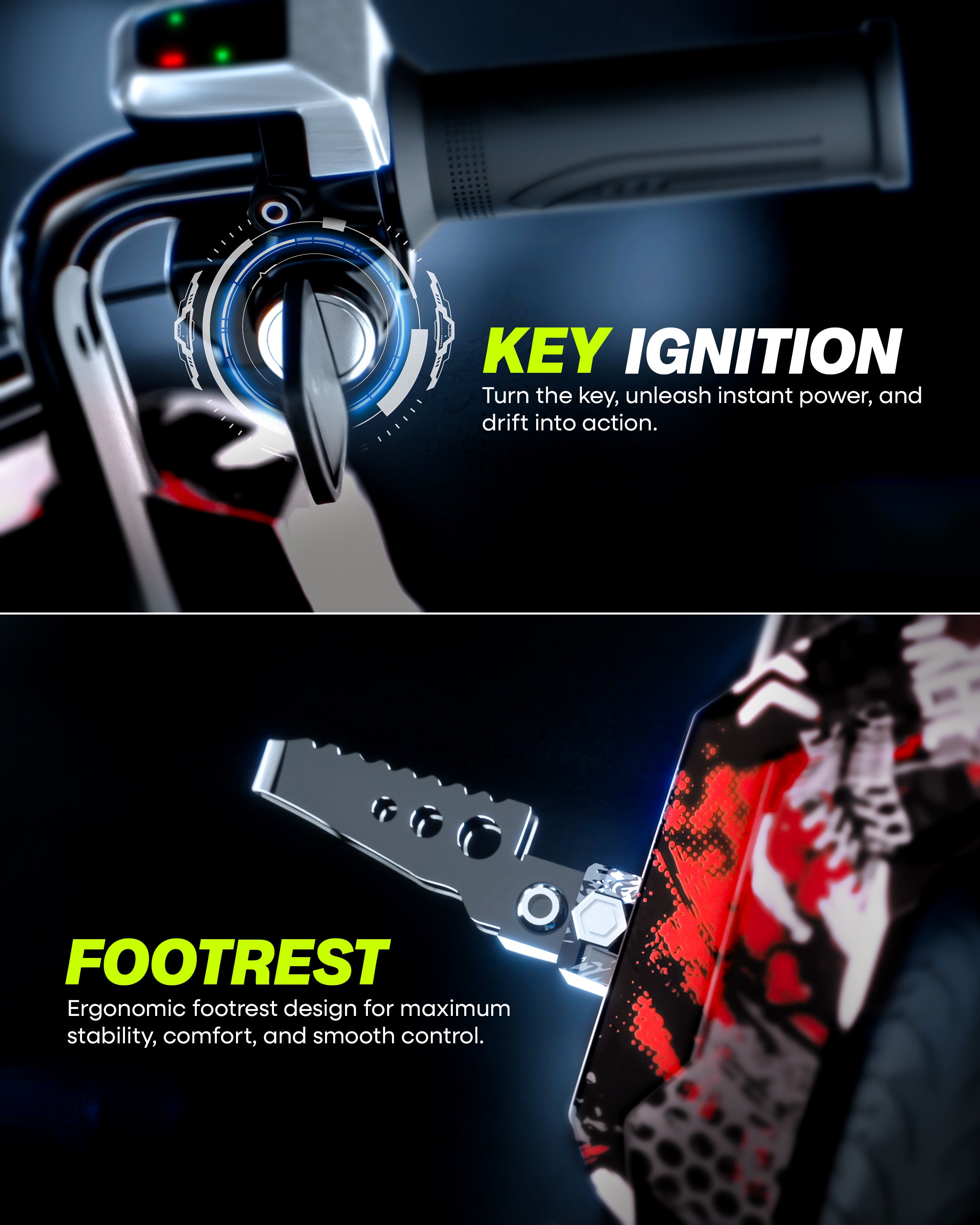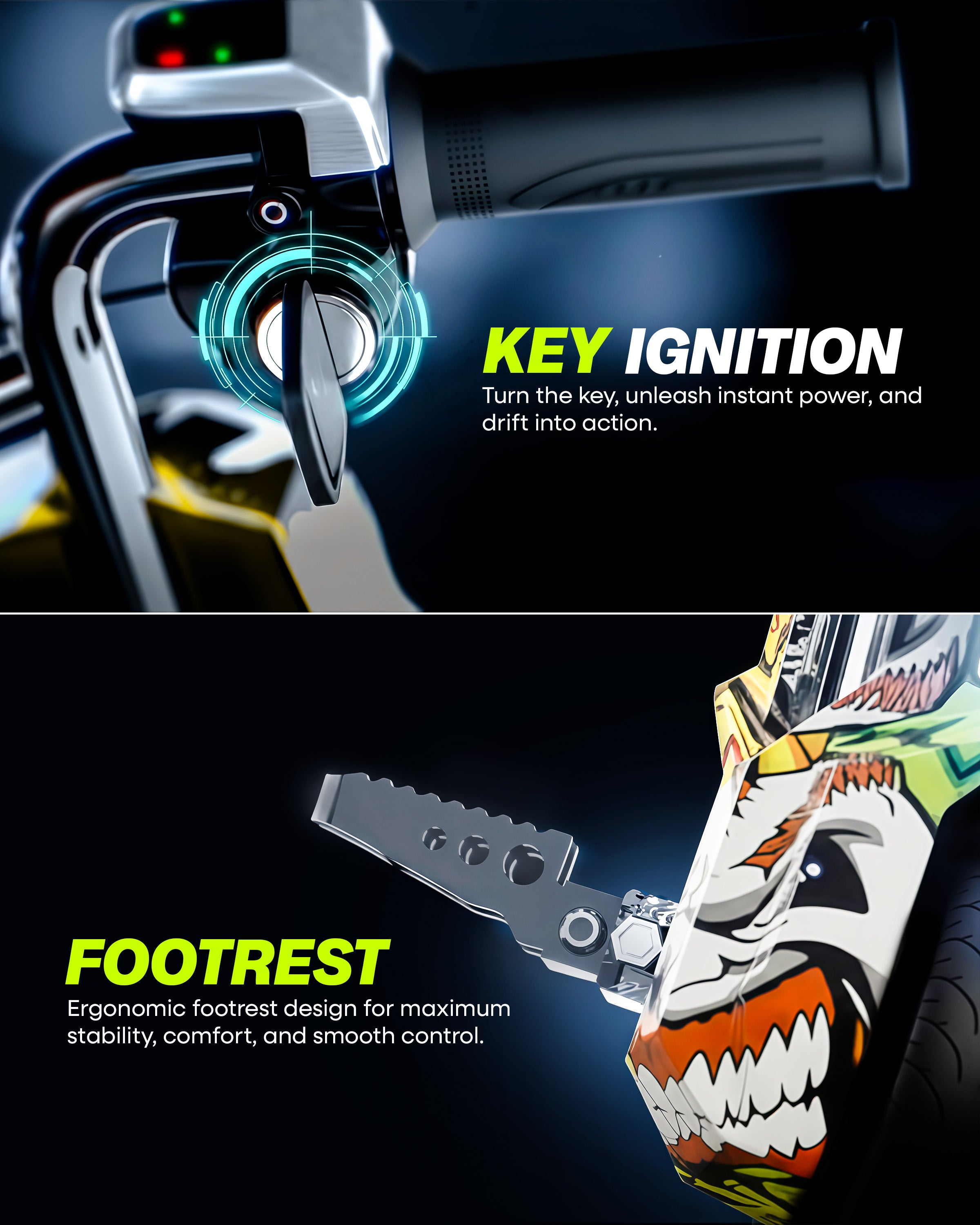 Choose your thrill! Three speed modes let riders customize their experience—from casual cruising to high-speed drifting—perfect for both beginners and pros.