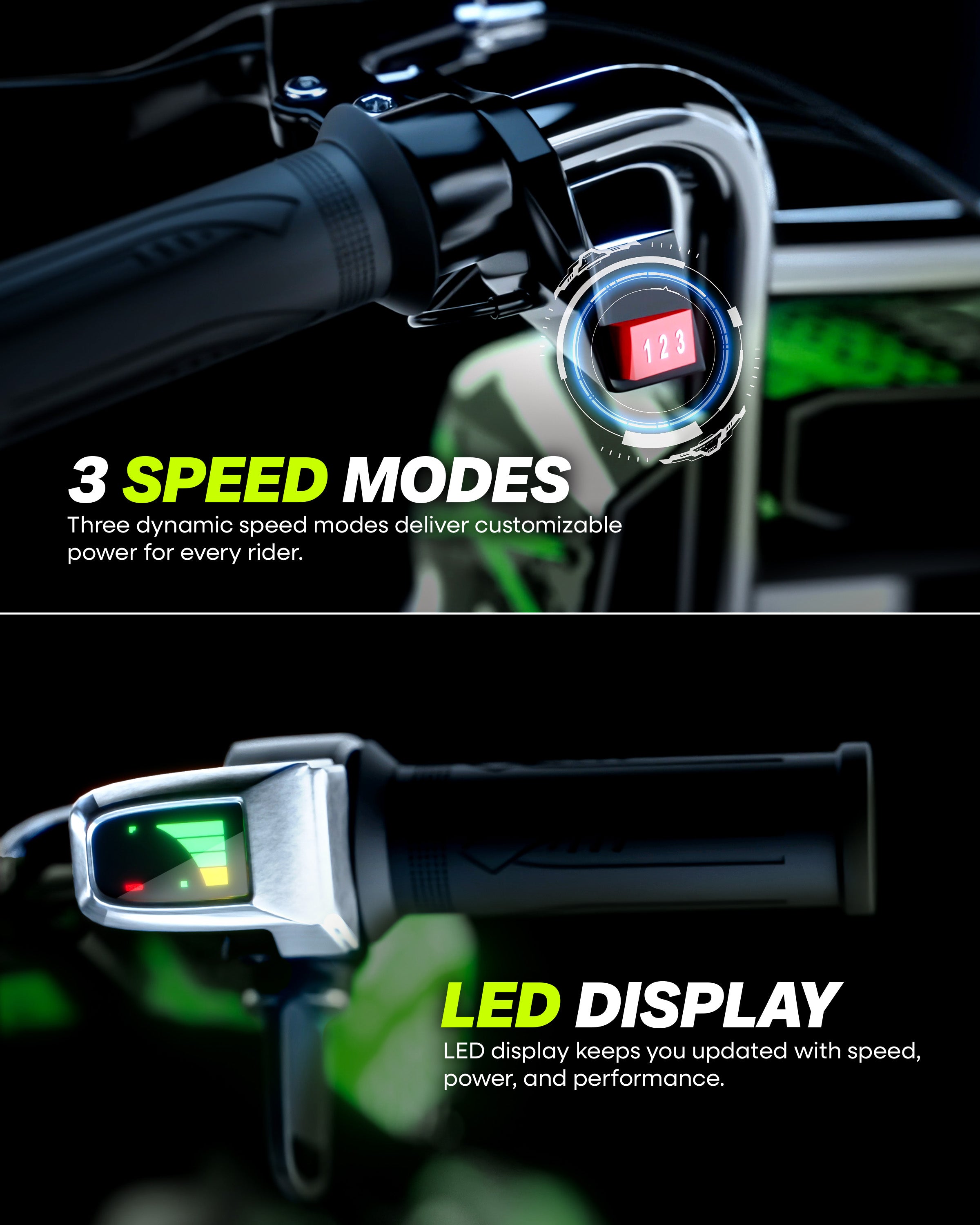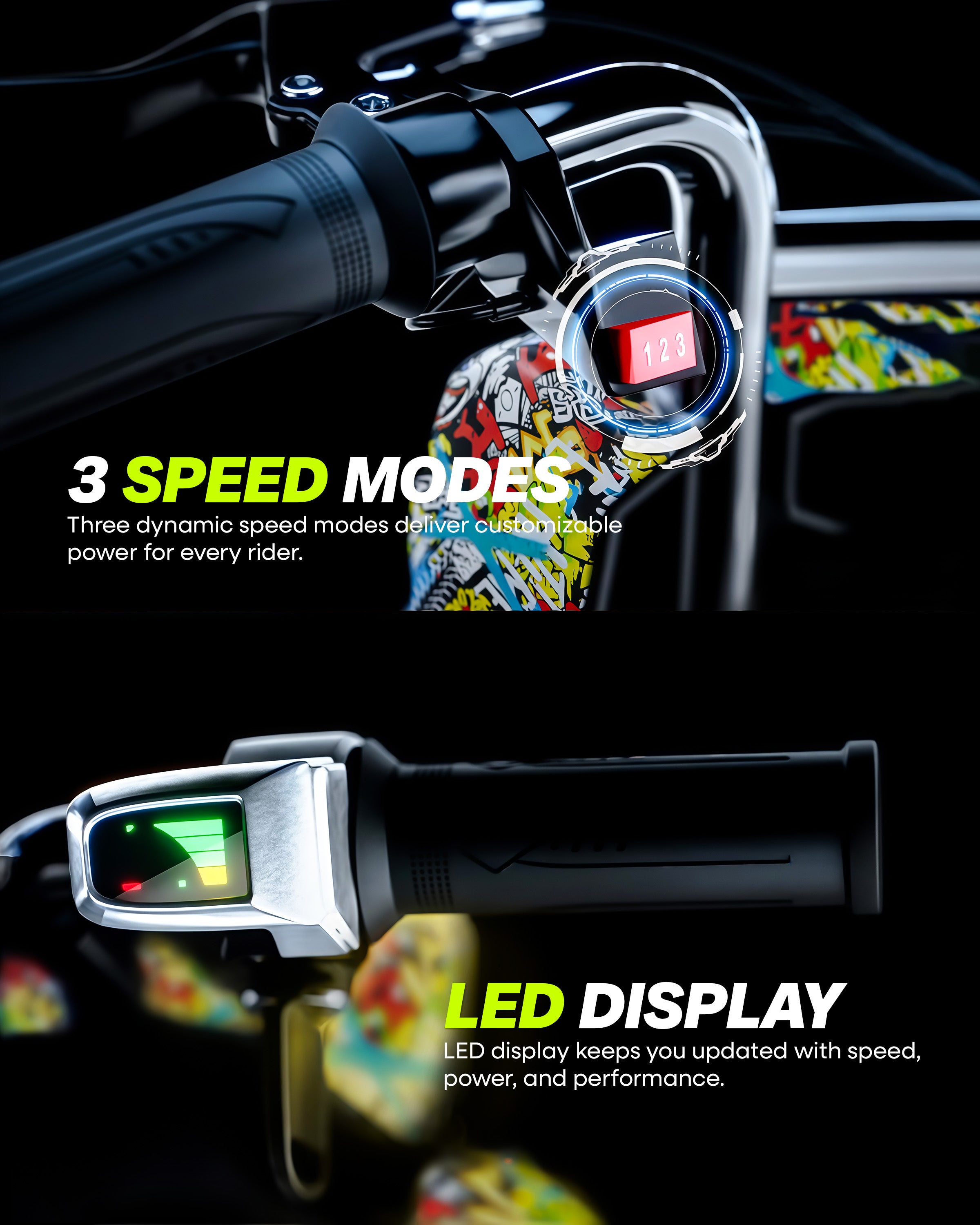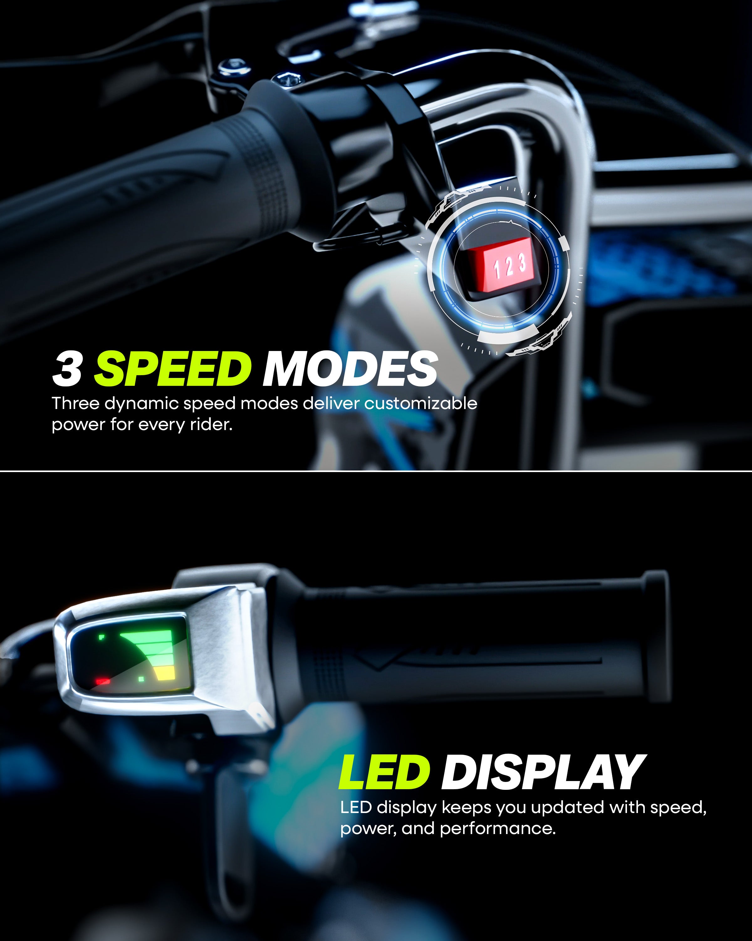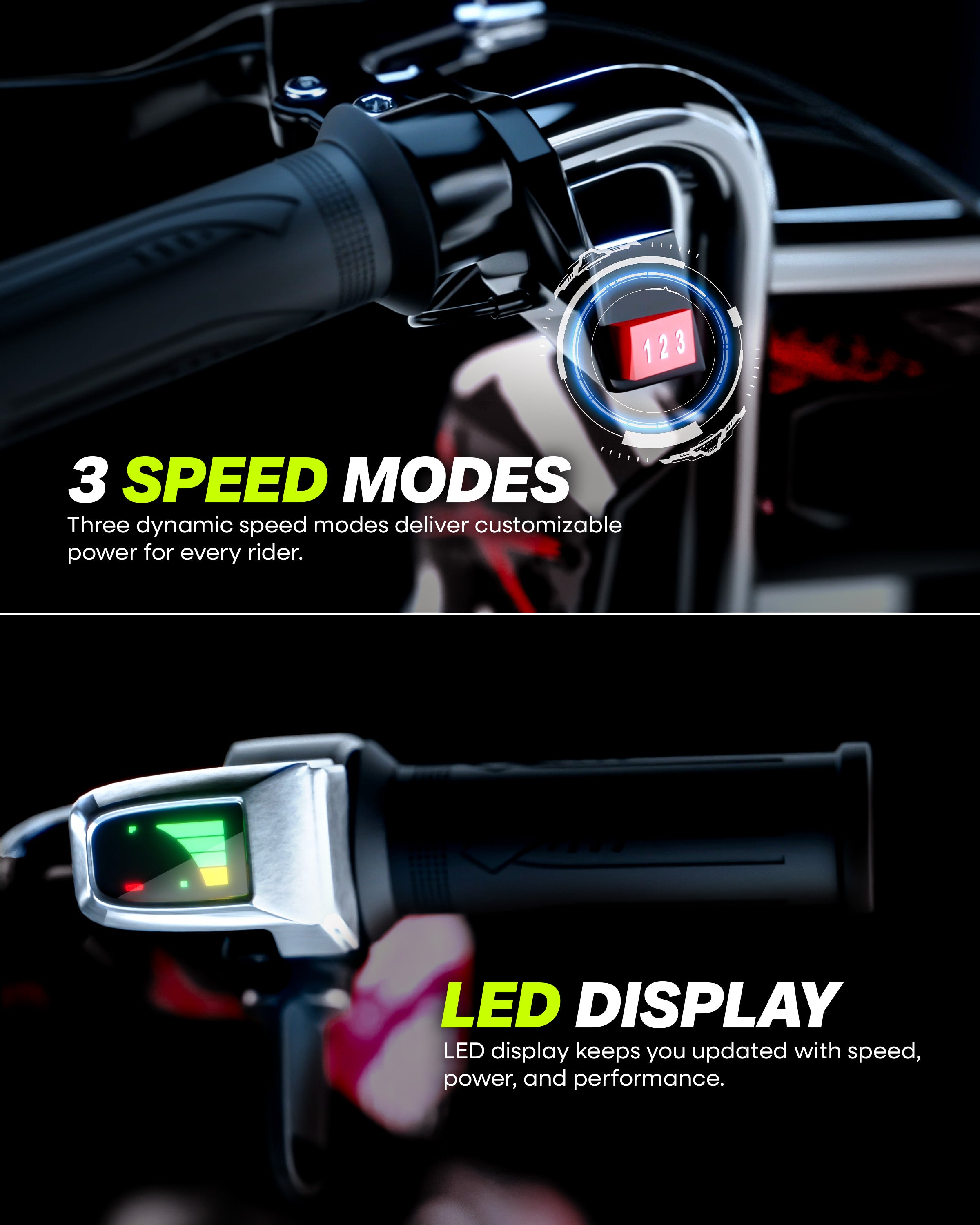 Choose your thrill! Three speed modes let riders customize their experience—from casual cruising to high-speed drifting—perfect for both beginners and pros.