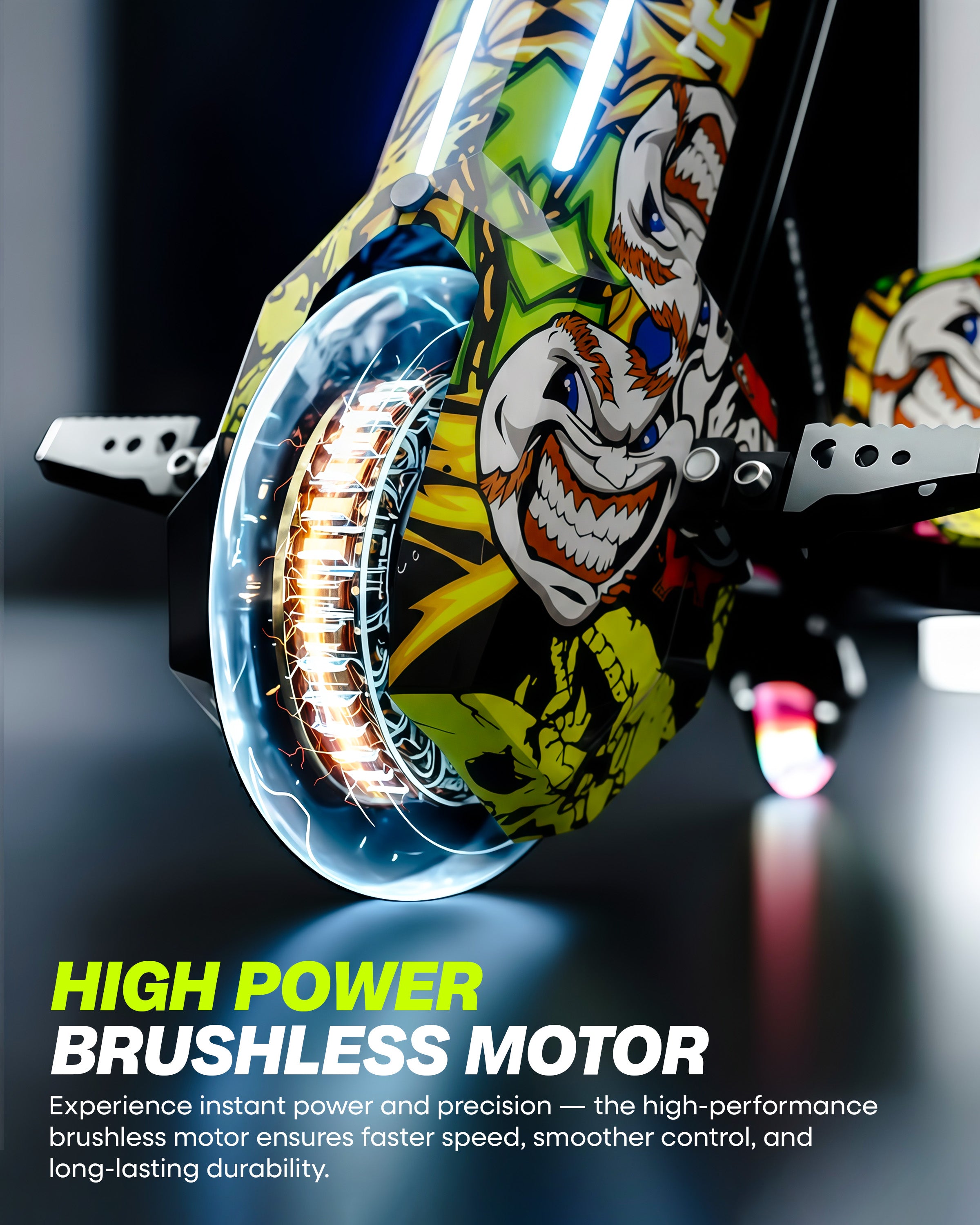Unleash the thrill! Dual inclined caster wheels allow for epic 360° spins and extreme drifting, turning every ride into an adrenaline-packed adventure.