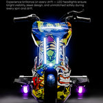 🎧 LIGHTS, SOUND, ACTION Built-in Bluetooth speakers, bright LED headlights, and a push-button horn add an extra layer of excitement—ride loud, shine bright, and stand out from the crowd!